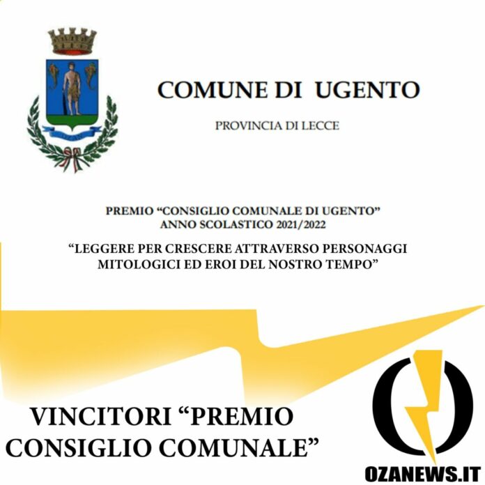 Il 25.01.2022 veniva approvato il bando di concorso “Premio Consiglio Comunale di Ugento” per l’anno scolastico 2021/2022 e veniva definito il seguente tema oggetto del concorso: “Leggere per crescere attraverso personaggi mitologici ed eroi del nostro tempo”.