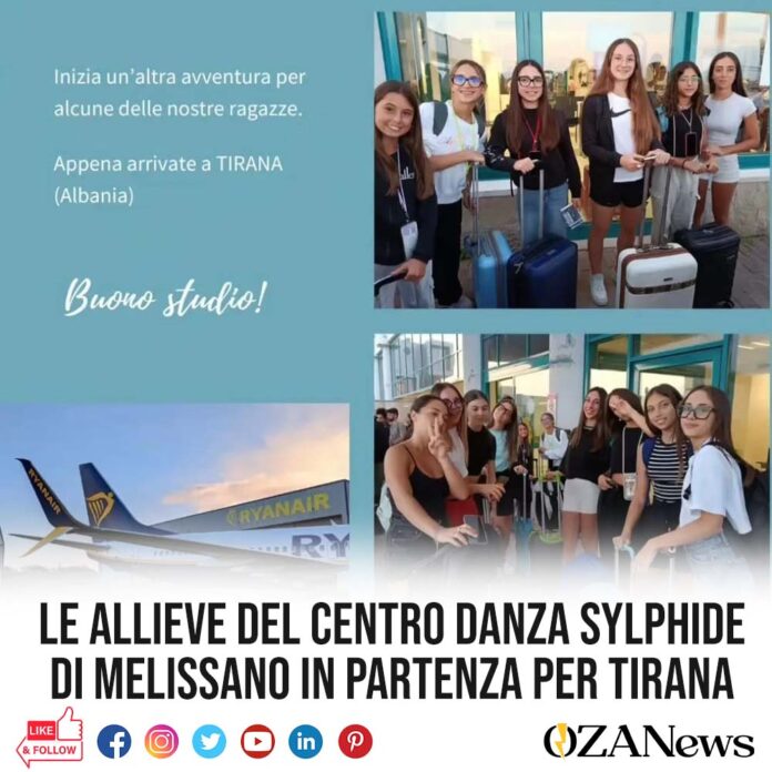 Melissano, 20 luglio 2024 – Con entusiasmo e determinazione, 14 allieve del Centro Danza Sylphide di Melissano, sono volate oggi a Tirana, Albania, per una settimana di studio presso la prestigiosa SHKOLLA e BALETIT TIRANË. Questa rinomata Accademia Internazionale di Danza è un luogo dove hanno mosso i loro primi passi anche celebri ballerini come Kledi Kadiu e Anbeta Toromani.