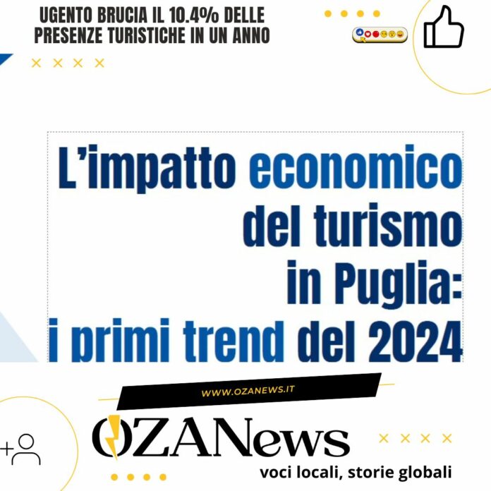 La stagione turistica 2024 si è conclusa con un bilancio preoccupante per Ugento, storica meta balneare del Salento. I dati ufficiali dell’Osservatorio regionale del Turismo confermano le peggiori previsioni: le presenze turistiche sono crollate da 846.000 nel 2023 a 758.000 nel 2024, registrando un calo del 10,4%. È il peggior risultato degli ultimi dieci anni per questa rinomata località costiera in una classifica che vede Vieste regina delle presenze: il comune garganico fa registrare oltre 1,7 milioni di presenze, piazzandosi davanti a Bari (1,2 milioni) e Ugento (758mila).