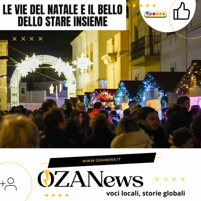 L’inaugurazione del programma natalizio “Uxentum le vie del Natale” credo simboleggi un clima di ritrovata comunità. L’onestà intellettuale deve portarci a riconoscere che si tratta di una kermesse straordinaria. Occasione, organizzata perché voluta, per potersi riscoprire comunità attraverso il rispolvero di quei rapporti sociali che molto spesso, per varie ragioni, trascuriamo e dimentichiamo. Una conferma che il senso di appartenenza, lo stare insieme, l’essere popolo che cammina unito, possono e devono realizzare senza rimanere attaccati al cellulare e ai sociali. Non vi nascondo che, almeno ieri sera, al netto di qualche selfie, ho visto poche persone concentrate sui telefonini e molte impegnate a parlarsi, a ridere e discutere guardandosi negli occhi, scambiandosi sorrisi e battute. Con gli occhi attenti a vigilare sui molti bambini presenti in pista, sulla quale si registrava anche la presenza di molti adulti. Proprio come cantano i Coldplay in una loro bellissima canzone – A sky full of stars – Ugento è sembrata, anche se lo è da secoli, un cielo pieno di stelle. Una socialità che è stata riscoperta, forse anche ritrovata, all’insegna della bellezza del nostro centro storico.