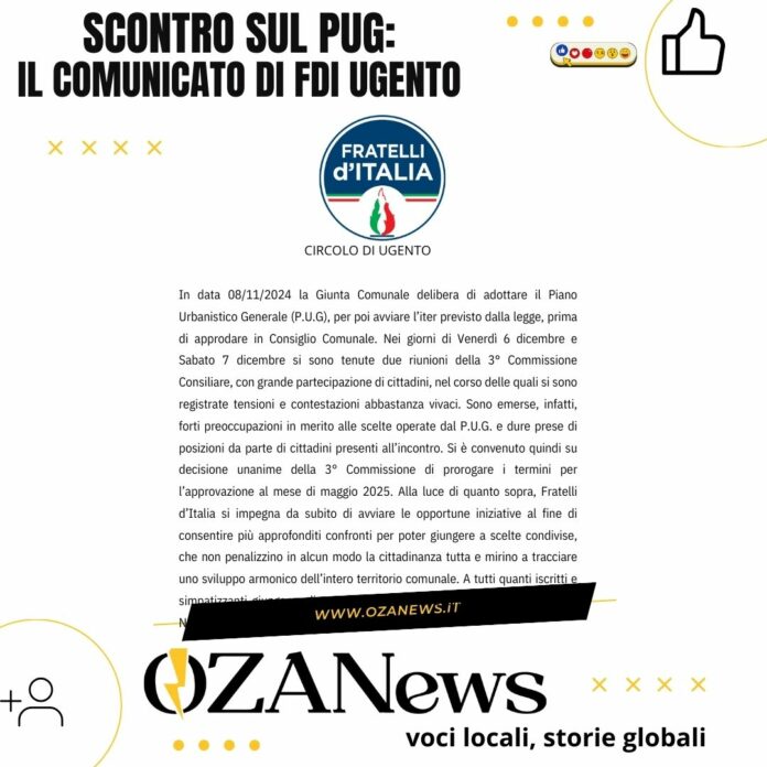 Il dibattito sul futuro urbanistico di Ugento infiamma il confronto politico locale. Il Piano Urbanistico Generale (P.U.G.), proposto dalla Giunta Comunale lo scorso 8 novembre, ha innescato un acceso confronto che rischia di ridisegnare gli equilibri amministrativi del comune salentino.
