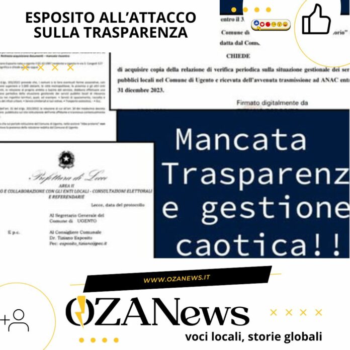 Il tema della mancata trasparenza nella gestione dei servizi pubblici locali a Ugento è stato sollevato con forza dal consigliere di minoranza Tiziano Esposito, che ha denunciato pubblicamente la questione attraverso i suoi canali social e durante l’ultimo consiglio comunale del 30 dicembre 2024. Esposito, da tempo impegnato a portare all’attenzione della cittadinanza le carenze amministrative, ha evidenziato come il Comune abbia ignorato gli obblighi di legge previsti dall’art. 30 del Decreto Legislativo 201/2022, rispondendo alle sollecitazioni dell’opposizione con motivazioni infondate e successivamente smentite dalla normativa stessa.