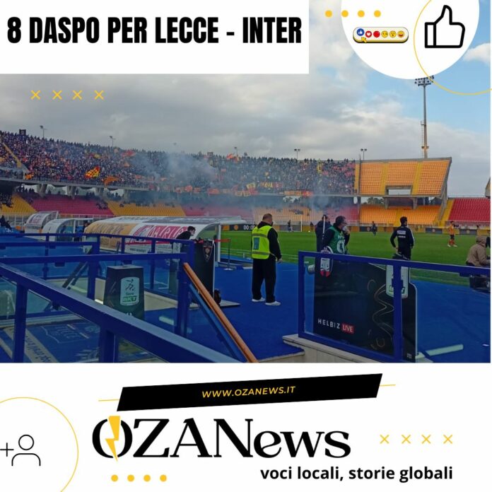 Otto tifosi, tutti provenienti dalla Lombardia, sono stati colpiti da un provvedimento di DASPO della durata di un anno, a seguito di gravi episodi di violenza verificatisi il 26 gennaio scorso. Il provvedimento, emesso dal Questore della provincia di Lecce, impedirà loro di accedere agli impianti sportivi su tutto il territorio nazionale.