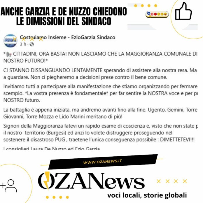A rafforzare la richiesta di dimissioni è il recente appello della lista Costruiamo Insieme, che ha chiamato a raccolta i cittadini per protestare contro il degrado amministrativo e le scelte scellerate della maggioranza comunale. La principale critica riguarda il Piano Urbanistico Generale (PUG), giudicato disastroso per l’assetto territoriale, e la gestione di Burgesi, un’area che sta subendo l’ennesimo affronto senza che l’amministrazione intervenga per impedirlo.