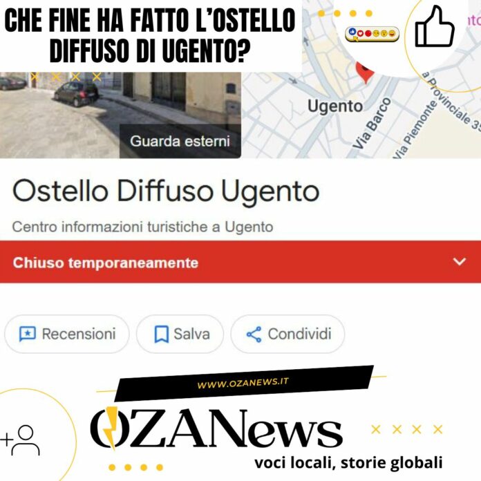 Sei anni dopo, l’Ostello Diffuso Ugento è chiuso — come segnala Google — e, di fatto, nonè mai esistito. Nessuna attività stabile, nessun circuito di ospitalità diffusa attivo, nessun vero progetto di destagionalizzazione compiuto.