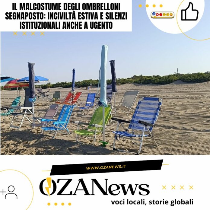 Ad Ugento, terra bellissima e meta turistica d’eccellenza, questo malcostume prospera indisturbato. Basta farsi un giro al mattino presto su alcune delle spiagge libere del litorale per trovarsi di fronte a un vero e proprio accampamento fantasma: ombrelloni piantati nella sabbia, sdraio legate, persino giochi e salvagenti lasciati a “riservare” uno spazio che dovrebbe essere di tutti.