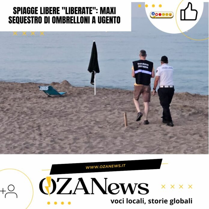 L’intervento, avvenuto nelle primissime ore del mattino, ha visto impegnati gli agenti della Polizia Locale di Ugento, guidati dal comandante Giovanni Schirinzi, in collaborazione con i militari della Capitaneria di Porto di Torre San Giovanni, agli ordini di Massimiliano Colazzo. I controlli hanno interessato tutte le spiagge libere delle marine di Torre San Giovanni, Torre Mozza e Lido Marini, dove sono state sequestrate decine di attrezzature da mare — ombrelloni, sedie e lettini — posizionate abusivamente dalla sera precedente.
