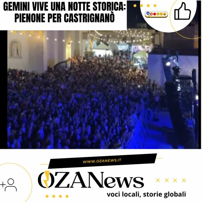 Gemini ha vissuto una serata che resterà a lungo nella memoria collettiva. La festa in onore di Santo Oronzo si è chiusa infatti con un concerto travolgente di Antonio Castrignanò, capace di trasformare Piazza Regina Elena in un palcoscenico vivo e pulsante, stracolmo di persone come forse mai prima d’ora nella storia della frazione di Ugento.