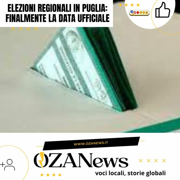 Il presidente della Regione Puglia ha firmato oggi i decreti che ufficializzano le consultazioni per l’elezione diretta del Presidente della Giunta e del Consiglio regionale. Dopo mesi di attesa e di indiscrezioni, finalmente conosciamo le date precise: si terranno domenica 23 e lunedì 24 novembre 2025.