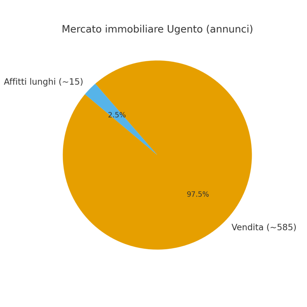 Oggi a Ugento il mercato immobiliare mostra un dato eloquente: su circa 600 annunci complessivi, solo una quindicina riguardano affitti a lungo termine. Tutto il resto è destinato alla vendita o, soprattutto, agli affitti stagionali e turistici.