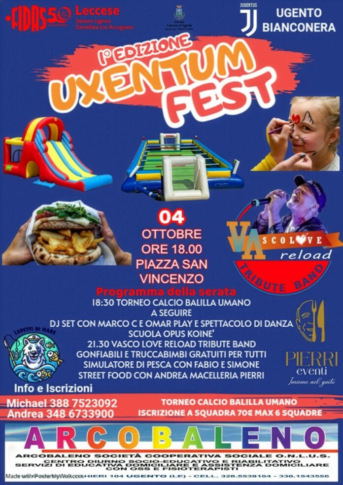 Il programma dell’UXENTUM FEST è pensato per coinvolgere grandi e piccoli. In piazza ci sarà spazio per attività ludiche, spettacoli e musica dal vivo. Tra gli appuntamenti in scaletta: