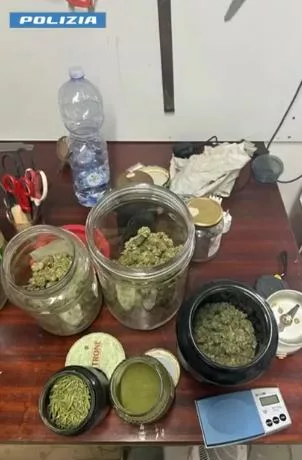 All’interno di questo spazio, sono stati trovati numerosi barattoli contenenti diverse fasi della lavorazione: in alcuni erano conservate infiorescenze già essiccate, pronte all’uso, in altri foglie essiccate e, in un contenitore separato, polvere ricavata dalla macinatura delle infiorescenze. Tutto il materiale era chiaramente predisposto per essere distribuito nel mercato illecito locale, alimentando la rete dello spaccio nel Basso Salento.