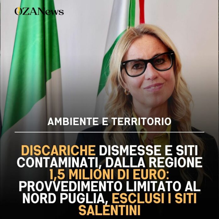La Regione Puglia stanzia ulteriori 1,5 milioni di euro per sostenere i Comuni nella fase di avvio degli interventi di riqualificazione ambientale legati alle discariche dismesse e ai siti contaminati. La decisione, approvata dalla Giunta regionale, finanzia gli studi di fattibilità tecnico-economica e i primi interventi prioritari, ma riguarda esclusivamente territori del centro-nord della regione, lasciando fuori tutti i siti del Salento, compreso quello di Burgési, nel Comune di Ugento.