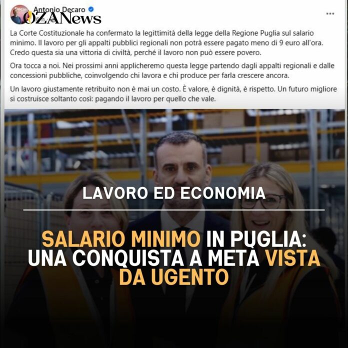 Una misura che, nei principi, parla un linguaggio chiaramente progressista: contrastare il dumping salariale, impedire che le aziende vincano gare pubbliche comprimendo il costo del lavoro, tutelare i lavoratori più fragili. Eppure, se osservata da un territorio come Ugento e più in generale dal basso Salento, questa conquista rischia di apparire parziale e persino contraddittoria.