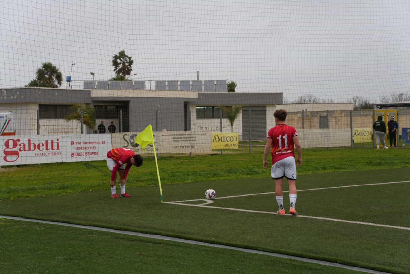 Una partita condizionata per due fattori: il primo, un fattore metereologico, il vento forte di scirocco è stato un disturbo importante per i 22, ma soprattutto per l’Ugento, l’espulsione di Macias al 36′ del primo tempo ha costretto i padroni di casa a giocare praticamente per un ora di gioco in dieci.